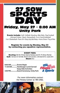 The 27th Special Operations Wing Sports Day, May 27, is an opportunity for Cannon Airmen and their families to represent their squadrons in various sporting events such as softball, golf, bowling, volleyball, basketball and many others. "It is a base morale, welfare, and recreation event designed to