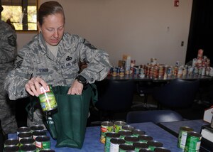 The Pecos Trail Dining Facility at Cannon Air Force Base, N.M., was a hub of excitement on Nov. 13, as the first sergeants, with the assistance of several volunteers, built food baskets for Airmen in need this Thanksgiving season. Each basket contained everything someone would need to make a